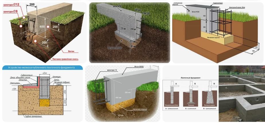 Решил себе для дома восемь на восемь поставить ленточный фундамент, изначально планировал устанавливать его на глубине порядка сорока сантиметров от уровня почвы глубиной. Но знакомый товарищ строитель сказал что обязательно нужно копать порядка полутора метров или больше глубиной траншею и уже на такой глубине закладывать фундамент. Подскажите на сколько я прав или не прав в этом случае. Как вообще определяется глубина у ленточного фундамента. При выборе варианта на какую глубину делать ваш ленточный фундамент, нужно исходить из тех соображений фундамент какого типа вы хотите возводить. Бывают фундаменты мелкозаглубленные, при этом их глубина составляет примерно около семидесяти сантиметров в глубину . Или ленточные фундаменты которые делаются на глубину несколько превышающую глубину замерзания грунта. Поэтому все это нужно определить заранее.