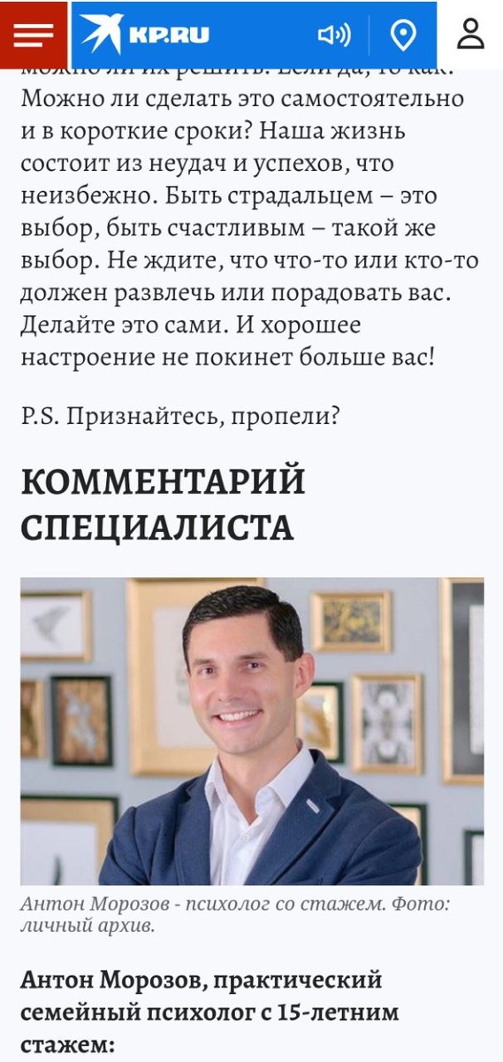 С благодарность: Морозов Антон Олегович, Практический и семейный психолог.