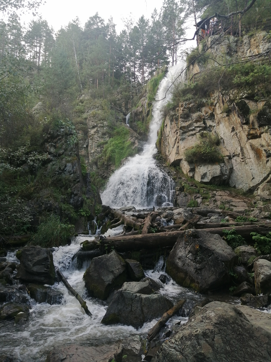 Камышлинский водопад – один из самых популярных на Алтае. Свое название он носит в честь речки, на которой находится – речки Камышла. Длина реки - 12 км., а высота падения водопада – 12 метров. К водопаду не проложено автомобильных дорог, но добраться до него можно двумя путями. Первый путь – на моторной лодке по реке Катунь. В поселке Барангол, на турбазе «Царская охота», есть пристань, где на этом поставлен хороший бизнес. Второй путь – перейдя по подвесному мосту через Катунь на ее левый берег, прогуляться 2 км. через сосновый лес по хорошо протоптанной дорожке вдоль берега. Начинаем наш путь к водопаду: На информационной табличке читаем, что тропа к водопаду именуется «тропой камов». Камами алтайцы называют шаманов. Отсюда и название водопада. Ритуал, сопровождаемый пением и ударами в бубен, во время которого шаман общается с духами, называется камлание. У нас в Татарстане есть село Камышлы, что в переводе с ряда тюркских языков означает камышовый, поэтому изначально я думал