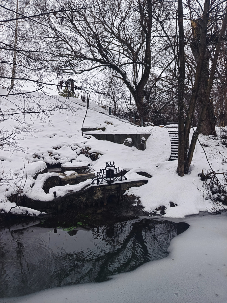 Давеча решили развеяться и сгонять посмотреть зимние виды родника Карпова в Александровку. Немного обленились вспоминать дорогу туда (очень уж давно не были на реке Панийка, на которой, собственно, и расположен данный родник), поэтому возложили сие задание на штатный навигатор Яндекса. Который бодро отрапортовал, что дорогу на 100% знает и готов-таки показать самый короткий путь к роднику. :) И действительно, четко и конкретно довёл нас до Александровки. До садового товарищества "Ветеран", предложив последние пару сотен метров до родника прогуляться по пустым, заснеженным проулкам. Мы люди не гордые, с навигатором спорить не стали, добрели по снегу до указанной точки... И только там (на месте) поняли, что реально нужная нам точка - тот самый родник, обустроенный заслуженным художником России Германом Трифоновичем Карповым лежит... ровно на 10 метров дальше нашего финиша. На другой стороне Панийки! :) В садовом товариществе "Александровское" за рекой. :) Впрочем, навигатор Яндекса нас