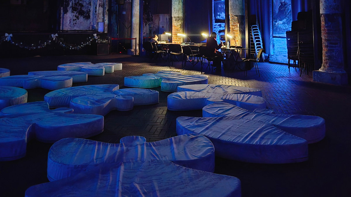 В этом году декабрь в Северной столице выдался не снежным, суетливым и весьма напряжённым. Я абсолютно потеряла атмосферу предрождественских и предновогодних дней. И дело совсем не в том, что огни города погасли. Они как раз и стали меня злить. Безумство бликов во времена грустных новостей вокруг. Чувство несоответствия убранства улиц и происходящего внутри усилилось, и я просто пошла в церковь. Да, Анненкирхе - это в первую очередь лютеранская церковь, а её инсталляции являются ничем иным, как проповедью Священного Писания. Сегодня в Аннекирхе звучит проповедь о Рождестве Христовом. Я люблю, когда слова наполнены контекстами, образами, метафорами. Инсталляции Анненкирхе превосходно воплощают то, что я люблю. Но в отличие от классической проповеди, инсталляции дают тебе возможность услышать открытым сердцем. У главной лестницы меня встретили ангелы - главные вестники Рождества. От них вверх по перилам завитками крадутся цветные жгуты. Ощущение, что радостные и долгожданные ново