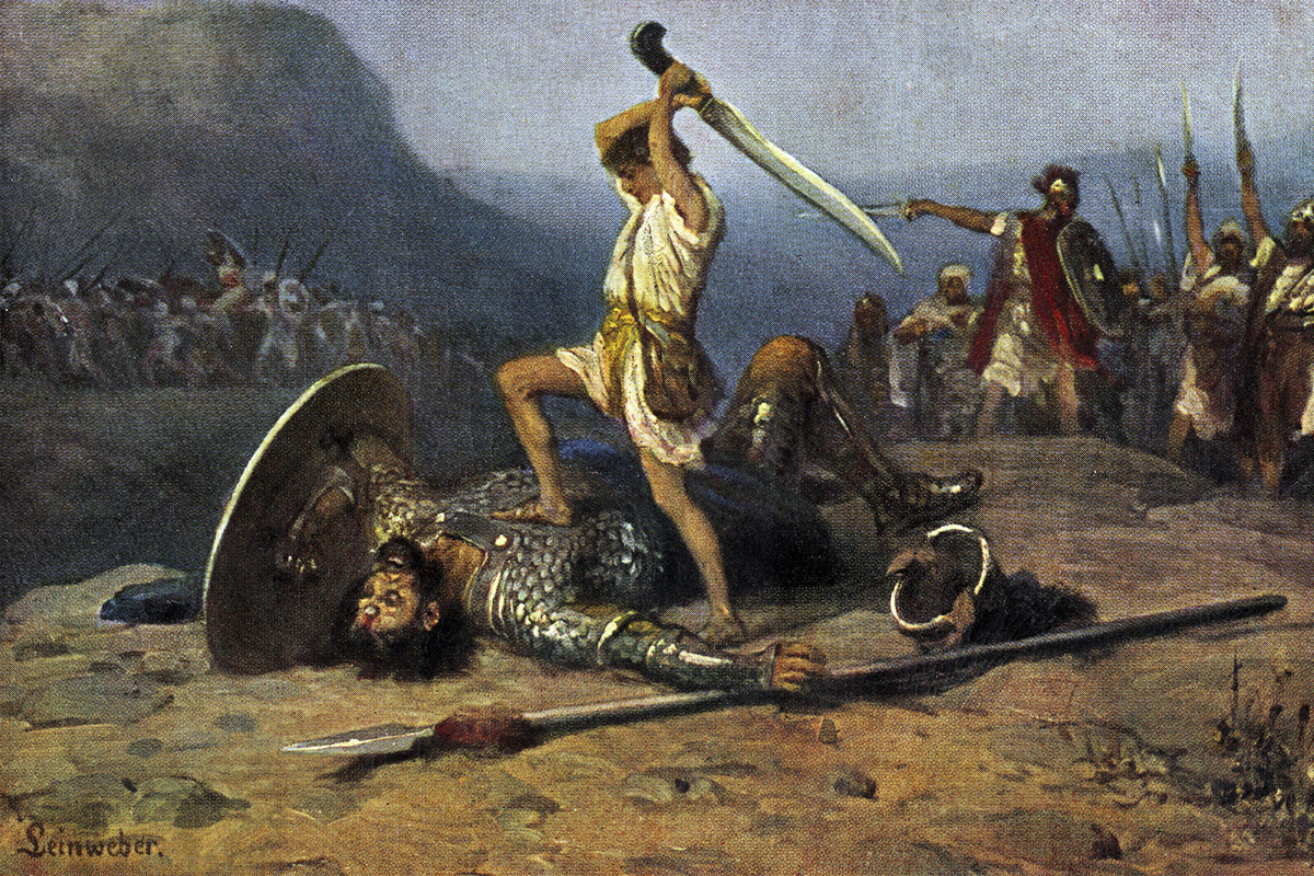 Сегодня хочу Вам рассказать про Давида – человека, который был пастухом, а стал царём. Давид родился в многодетной семье, доподлинно известно о семи старших братьях, но, возможно, были ещё и сестрички. Давид среди братьев был младшим. Он пас овец своего отца. Когда овечку уносил лев или медведь, то Давид догонял и отнимал добычу. В некоторых случаях приходилось даже умертвлять хищников почти голыми руками, так как пистолетов тогда ещё не было. Давид был был белокур, с красивыми глазами и приятным лицем, также Давид играл на музыкальных инструментах. И играл так, что нравилось не только себе, но и другим. Так, например, он играл на гуслях для царя. Однажды Давид понес еду своим братьям, которые готовились к войне с враждебным народом – филистимлянами. В это время перед войсками вышел силач филистимлян и, обзывая израильтян, призывал сразиться. Это был Голиаф, он был большим, сильным, могучим и воином с детства, поэтому с ним никто не решался сразиться. Давид не испугался и вышел на бой