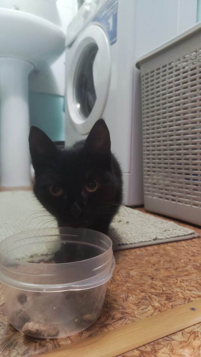 ❗Помогаем информационно❗ Сегодня мы вам расскажем, на первый взгляд, самую обычную и банальную историю, которая происходит во многих дворах, многих городах. Обычный дом, с самым обычным тёмным и сырым подвалом и как часто это бывает, живет там кошка и её котёнок. Возможно их жизнь не самая лучшая, но у них есть укромный уголок, они уже знают какие нужно избегать опасности, а когда нужно выйти к людям, потому что накормят и напоят. Во всей этой банальной истории, произошло ещё одно достаточно банальное событие – появился маленький черный котёнок. Котёнку очень повезло, что наша парочка приняла его, а не прогнала лишний рот, как чаще всего случается. Уличная жизнь жестока и проходит в постоянной борьбе за выживание, а тут домашний котёнок, который не может постоять за себя. Почему мы уверены, что домашний? Потому что он абсолютно ручной и наивный. Не боится никаких уличных опасностей и с радостью бежит ко всем людям. Такие долго не выживают на улице. Этому наивному малышу просто жизнен