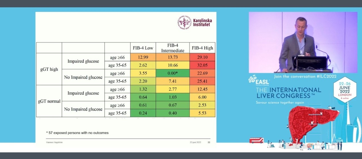 На конференции Европейской ассоциации по изучению печени (EASL) было представлено большое количество докладов, затрагивающих проблему неалкогольной жировой болезни печени (НАЖБП) и неинвазивной диагностики фиброза, прогрессия которого постепенно становится необратимой с формированием цирроза печени. Интерес подчеркивается тем фактом, что НАЖБП является сегодня наиболее распространенным заболеванием печени и одной из ведущих причин формирования цирроза печени. Мы хотели бы остановиться на тех сообщениях, которые могут быть применимы в рутинной практике врачей и интересны нашим пациентам. Первым упомянем доклад профессора Hannes Hagstrom (Швеция): Стоит отметить, что в рутинной практике биопсия печени не применима в силу комплекса причин, в первую очередь, из-за риска осложнений. Поэтому в настоящее время возрастает интерес к неинвазивному скринингу фиброза печени. Он дарит нам надежду, что пациенты с обнаруженным нами высоким риском развития/прогрессирования фиброза в дальнейшем изменят