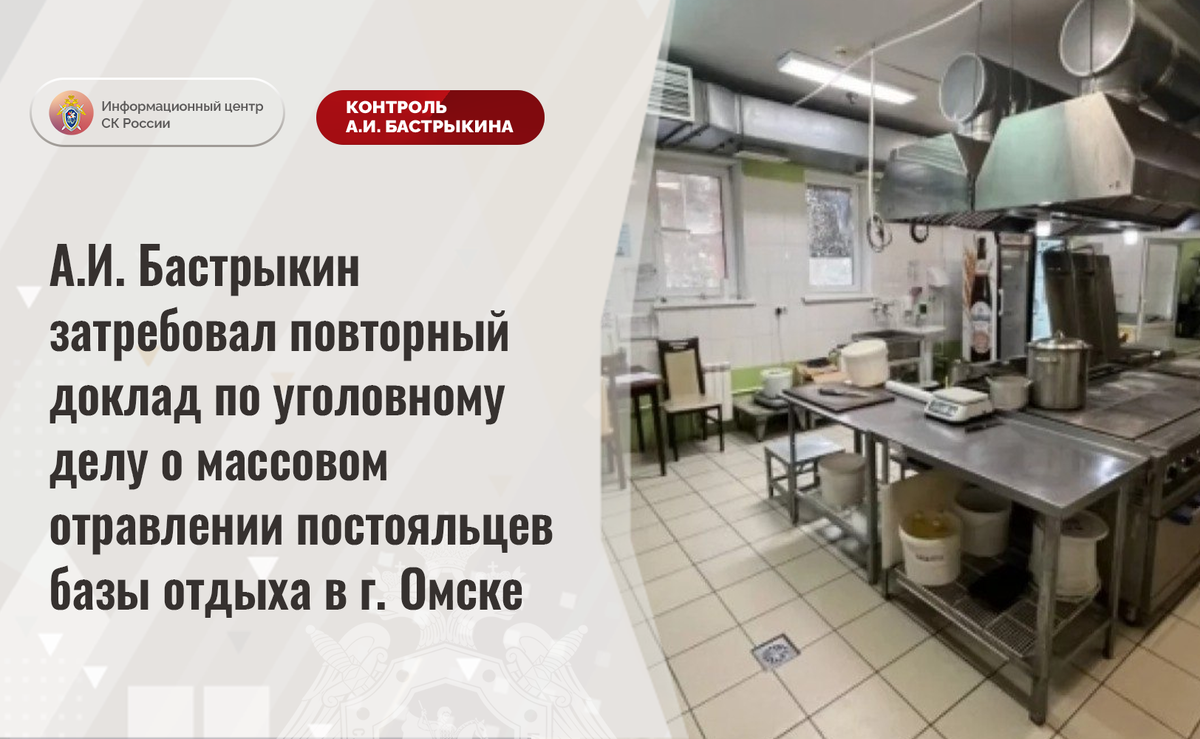 А.И. Бастрыкин затребовал повторный доклад по уголовному делу о массовом отравлении постояльцев базы отдыха в г. Омске В СМИ и социальной сети сообщалось об увеличении числа пострадавших после массового отравления постояльцев базы отдыха «Сказка» в санаторно-курортной зоне «Чернолучье» в городе Омске. В декабре текущего года после употребления продуктов питания, реализуемых в ресторане заведения, не менее 20 человек высказали жалобы на ухудшение самочувствия. Впоследствии за медицинской помощью обратилось 27 человек, при этом 15 из них, в том числе 4 детей, госпитализированы в инфекционное отделение. В СУ СК России по Омской области расследуется уголовное дело, возбужденное по поручению А.И. Бастрыкина. Председатель Следственного комитета Российской Федерации Александр Иванович Бастрыкин затребовал у руководителя СУ СК России по Омской области Виталия Владимировича Батищева повторный доклад о ходе и результатах расследования уголовного дела. Исполнение поручения поставлено на контроль