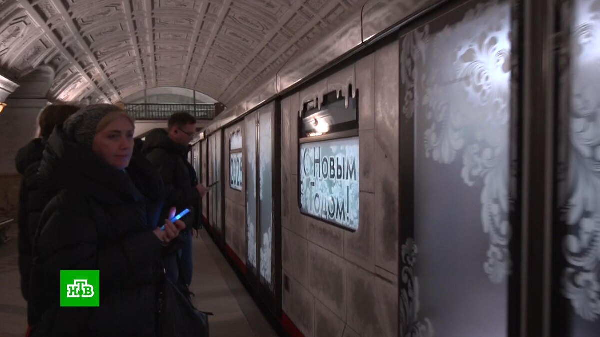 [ Смотреть видео на сайте НТВ ] На Кольцевой линии метро до 31 января можно прокатиться на новогоднем поезде. В Москве украшают не только елки: на Кольцевой линии подземки запустили новогодний поезд «Ледяной». Снаружи вагоны украшены имитацией ледяных блоков, сосулек и снежинок, а внутри расписаны морозными узорами и наряжены хвойными гирляндами. Прокатиться на праздничном поезде можно до 31 января. Тематические составы стали новогодней традиций метро, как и украшение станций: на фасадах многих из них появились объемные праздничные арки и световые инсталляции. Так, на «Семёновской» новогоднее настроение создает декорация из огромных подарочных коробок. [ Смотреть видео на сайте НТВ ]