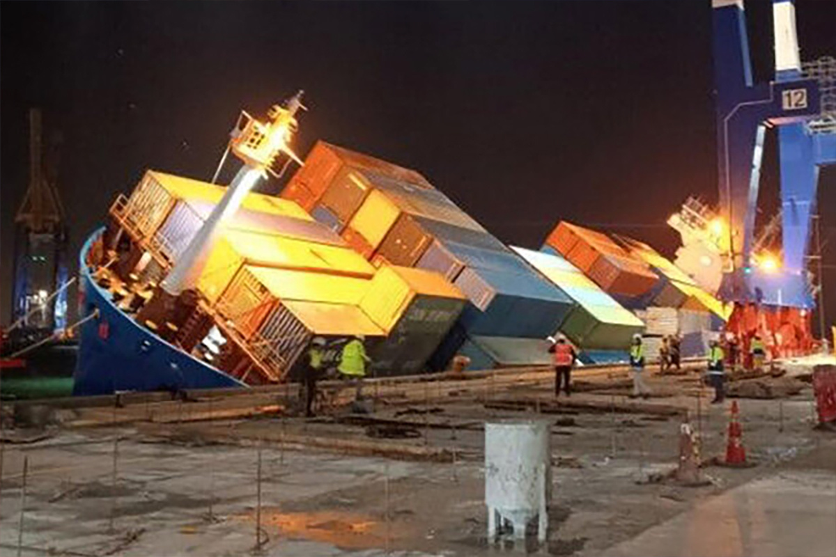 Согласно опубликованному Минтрансом видео, в результате аварии корабль с контейнерами затонул у причала. В настоящее время начаты работы по извлечению контейнеров из воды.