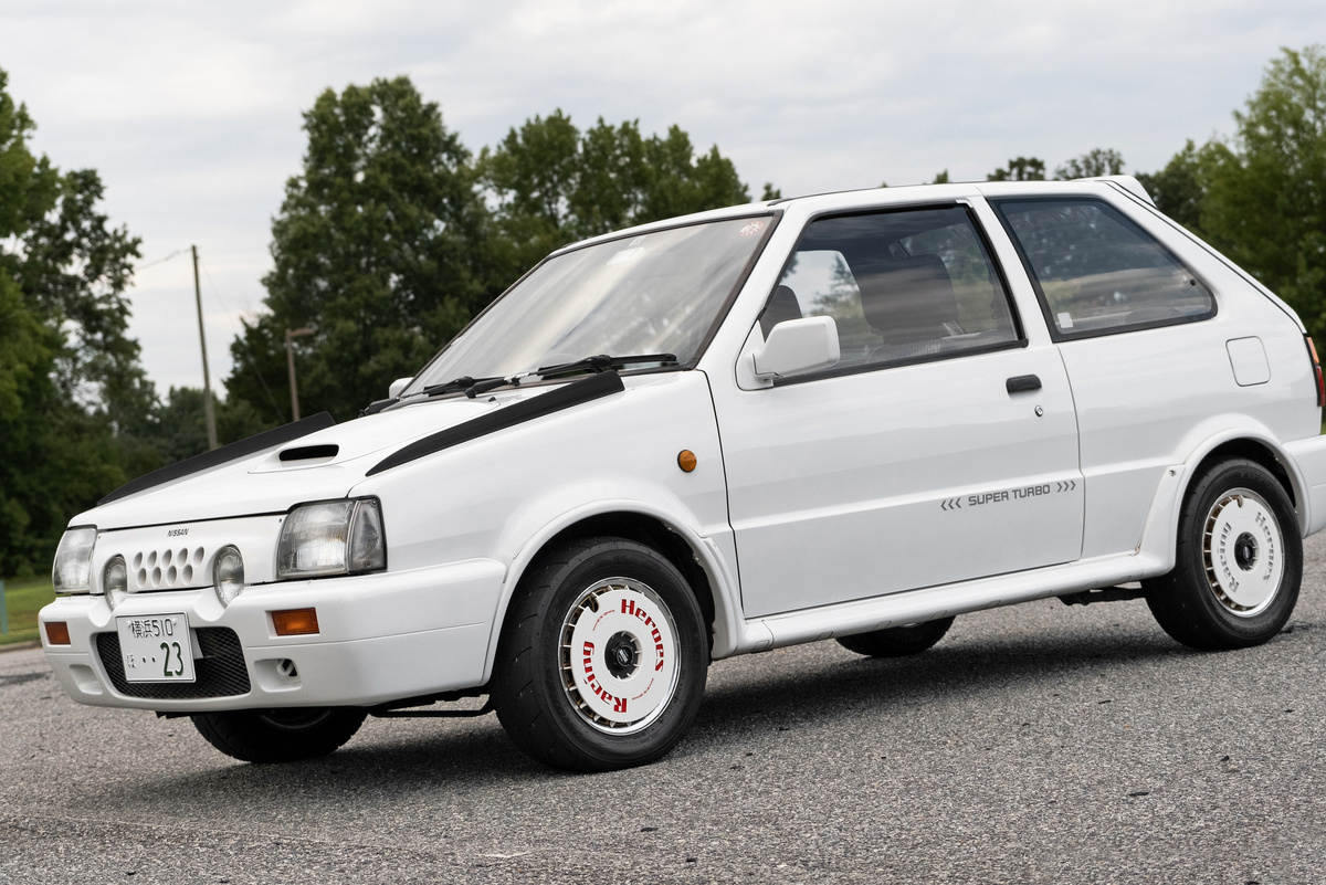 В июле 1988 года, когда жизненный цикл модели уже подходил к концу, Nissan начал производство версии R специально для спорта. Поэтому — только белый цвет и почти полное отсутствие «комфортных» опций... А главное, под капотом с характерным горбом воздухозаборника — уникальный 930-кубовый «супер-турбо» мотор MA09ERT. «Супер» — потому что к турбине добавили ещё и объёмный компрессор типа Roots (то есть Supercharger).