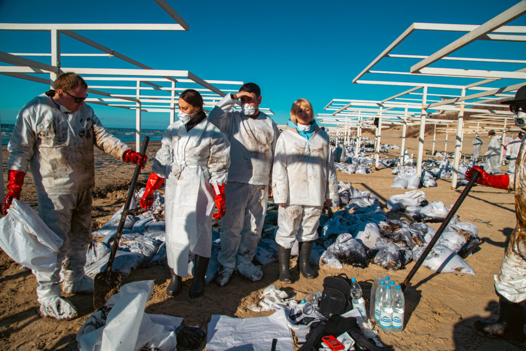 Стоит чудесный день: около 12 градусов, синева неба вкупе с солнцем слепит глаза, с моря дует легкий бриз, а волны с шепотом набегают на берег. Широкая полоса пляжа в Джемете усыпана желтым, цвета спелой пшеницы, песком. Он толстым слоем уходит вниз, к воде: вгоняю в него полотно лопаты, еще и еще раз — под ногами один песок. Но это в начале пляжа. Поднимаю глаза, смотрю в сторону моря, и вижу толстый слой черной густой маслянистой жвачки, которая покрывает берег примерно 10-метровой ширины покрывалом, начала и конца которому не видно. Стоит едкий запах, как будто вы находитесь в автомастерской, не помогает даже респиратор. Этот запах будет преследовать вас еще несколько дней и останется на подошве вашей обуви, даже если вы переодевались в защитные костюмы в «чистой зоне». Мы с коллегами вгрызаемся лопатами в мазут, складывая в плотные строительные пакеты куски горького пирога, который травит собой все живое: моллюсков, водоросли, дельфинов, водоплавающих птиц. Эмоции переполняют, но н