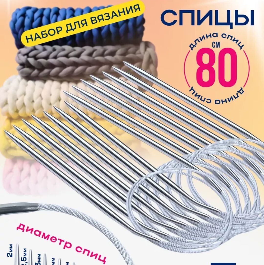 Сначала не обязательно покупать дорогие спицы, можно просто на wildberries купить самые обычные спицы средней длинны к примеру 60 см и учится на них, а с размером каждый определится самостоятельно.