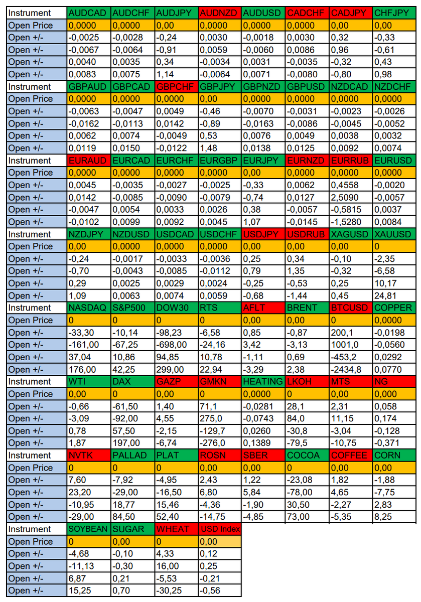 Здравствуйте Уважаемые трейдеры! Александр Борских подготовил для Вас свежую информацию. Очередные сезонные тенденции на Вторник 24 Декабря 2024 по основным мажорам финансовых рынков. Весь перечень анализируемых активов указан ниже в общем количестве 60 инструментов. Здесь Вы найдете активы рынка Форекс, популярные активы Московской биржи, не менее популярные активы Чикагской биржи СМЕ и мажор криптовалютного сегмента - Биткоин, за которым следуют все альткоины. Первый блок информации с зонами лимитных покупок и продаж. Данная информация включает в себя не только статистический показатель волатильности каждого актива, но и ближайшие опционные страйки с учетом премий за риск (Для верных расчетов рекомендуется просмотреть теоретическое видео в свободном доступе - Как использовать блок сезонности). А теперь сам блок информации №1: Второй блок информации с направленным вектором движения и вероятностями (внимательно обращаем внимание на цену открытия каждого актива. Обязательно для верных р