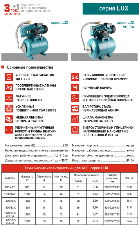 Современные двигатели, используемые в насосных станциях PROFLINE, потребляют меньше электроэнергии по сравнению с аналогами, что позволяет существенно сократить расходы на эксплуатацию. - Надежность и долговечность