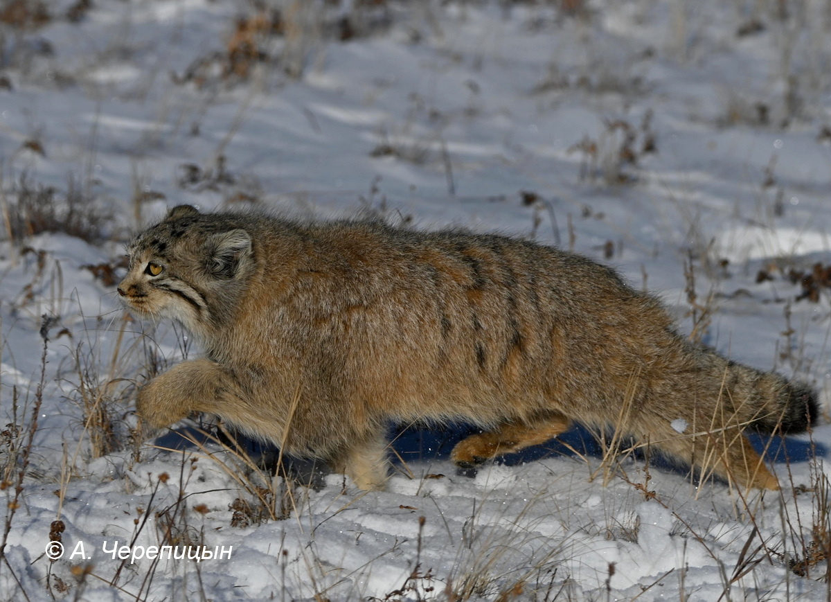 Зима - суровое время года. Для диких животных зимой наступает сложный период - холодно, ветрено, много или, наоборот, очень мало, снега, мало пищи. Зимняя Даурская степь – не место для слабых и больных. Диким животным трудно выжить в эту пору. Некоторые впадают в спячку, как, например, сурки и суслики. Некоторые кочуют туда, где теплее или больше пищи… А кто-то приспосабливается к суровым условиям и ведёт свою степную жизнь. Как, например, манулы. Они меняют летнюю легкую «шубку» на толстую теплую зимнюю. Осенью – в сентябре-октябре - нагуливают толстый слой жира (у манулов это называется зажировка – иной раз, при хороших условиях, вес кота увеличивается на 70-90%), находят убежища от пронизывающего ледяного ветра среди редких камней, в старых норах лисиц, барсуков или сурков. Жить можно! То зазевавшуюся птаху поймает, то полёвку, не успевшую шмыгнуть в нору, а то и пищухой или зайцем удастся полакомиться. Зачем далеко ходить и искать пищу, да еще и бегать догонять? На своей территории, а они у манулов небольшие (6-10 км2 у самок, 20-35 км2 у самцов), заранее изучены и помечены все колонии полевок и пищух, все места,где могут кормиться куропатки и другая пернатая мелочь. Каждый камешек, каждая норка известна, с соседями отношения выяснены еще летом – чужаков прогнал, тому кто не понял и ухо порвать или потрепать хорошенько не возбраняется. А сейчас спать, спать! В норке уютно, можно и пару-тройку дней просидеть, переждать, пока мороз отпустит и ветер стихнет. Выбраться наружу, оглядеть окрестности, узнать последние новости, может и перекусить и опять на бочок, отдыхать.
