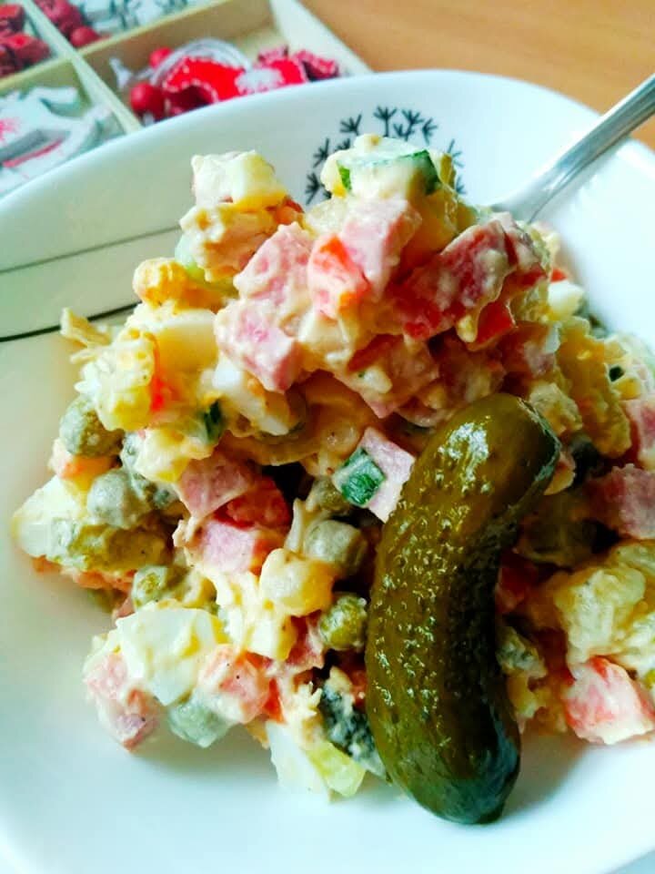 Всем привет! Вариаций салата знаменитого повара Люсьена Оливье - очень много. По сути, как и любой салат, его можно приготовить практически из чего угодно) Я сама готовлю оливье частенько, в разных вариациях. Покажу вам один из таких вариантов. Я много раз ныла по поводу невкусной и клейкой херсонской картошки. Она, как камень, не разваривается, хоть убейся. И вот я ныла, ныла, даже вот на днях, когда делала « шубу», когда картофель липким куском тянулся за теркой) И мироздание меня услышало. Нннна тебе картошки! Отличной, вкусной, разваривающейся и сахаристой. На и не ной! Купила сегодня. Но именно сегодня мне нужна была картошка, которая не разваривается, для оливье) Картошка разварилась в хлам))Но это меня не остановило) Картофель Морковь Лук репчатый, салатный Лук зелёный Яйца Огурец свежий Огурцы маринованные Каперсы Отварная куриная грудка Сервелат Зелёный горошек Соль, перец Майонез. Я все же стараюсь, чтобы оливье был более - менее канонический) А вот наша пиццерия, та поста