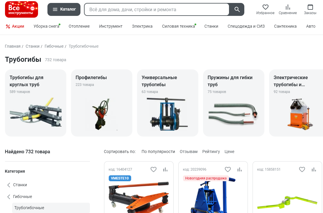 Так, уже легче, количество товаров с 732 сократилось до 63. Теперь нужно выяснить, что лучше - роликовый трубогиб или рычажный. Тут уж надо с мужиком консультироваться.