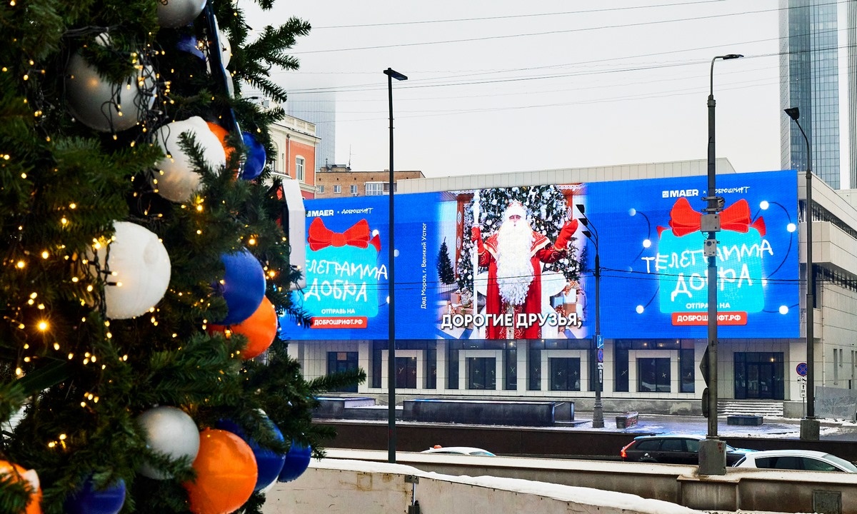 Медиахолдинг МАЕР в преддверии новогодних праздников запустил два федеральных проекта. Принять в них участие смогут все жители России. Любой желающий может украсить фотографиями своей семьи цифровую елку и отправить новогоднее поздравление своим близким, друзьям и коллегам. Старт акции «Новогодняя телеграмма добра» был дан 20 декабря Дедом Морозом из Великого Устюга. Он первым отправил виртуальное поздравление: «Дорогие мои! С Новым годом! Пусть будет мир вокруг и в сердце каждого! Берегите близких!». О новом проекте, реализованном совместно с медиахолдингом МАЕР рассказала руководитель фонда «Подарок ангелу» и соавтор проекта «Доброшрифт» Анастасия Приказчикова. «Мы превратили фасады домов в добрый мессенджер. Можно отправить новогодний привет родственникам в другой город или поделиться секретным рецептом салата оливье, загадать желание или признаться в любви. Для этого надо зайти на сайт доброшрифт.рф написать короткое сообщение, указав город и имя. Сообщения принимаются до 28 декабр