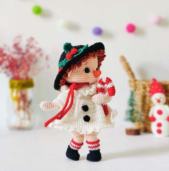 Поместим крючок в место на фото (18 ряд).(9 вп, со 2-й петли; 8пр, 3сбн до шляпки)*24 Оставляем нить для пришивания Пришейте или приклейте к голове