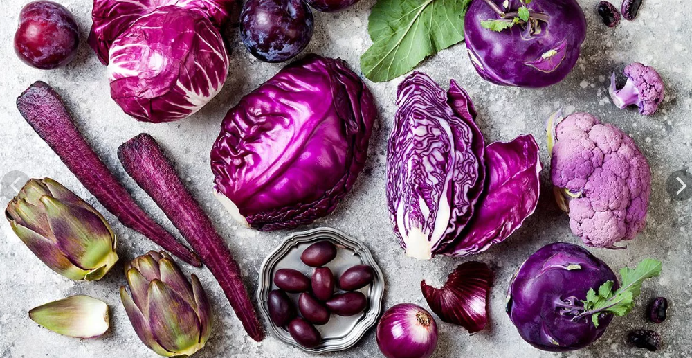 Фиолетовые, пурпурные, сиреневые и синие фрукты и овощи изобилуют природными антиоксидантами, которые способствуют защите организма от свободных радикалов. Их избыток может привести к преждевременному старению и различным заболеваниям.