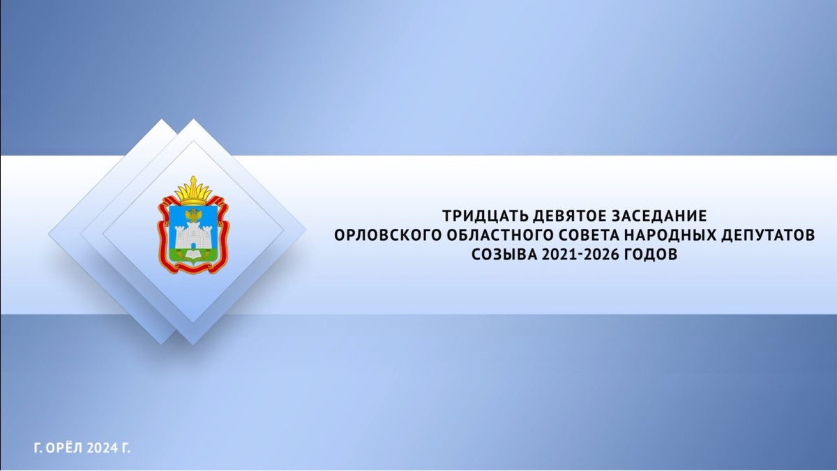 На тридцать девятом заседании Орловского областного Совета народных депутатов было рассмотрено 26 вопросов, затрагивающих различные сферы жизни нашего региона. Основные из них касались внесения изменений в некоторые законодательные акты Орловской области, внесения изменений в закон «О регулировании отдельных правоотношений в сфере обеспечения граждан Российской Федерации бесплатной юридической помощью в Орловской области», внесения изменений в законы Орловской области «Об основах охраны здоровья граждан в Орловской области» и «О дополнительных гарантиях реализации права граждан на обращение в Орловской области», внесения изменений в закон «О реализации отдельных положений Федерального закона "О промышленной политике в Российской Федерации"». Завершил заседание «правительственный час». При работе над проектом закона Орловской области № 520-7 «О внесении изменений в некоторые законодательные акты Орловской области» уточнили положения, устанавливающие, что объем субвенций, предоставляемых