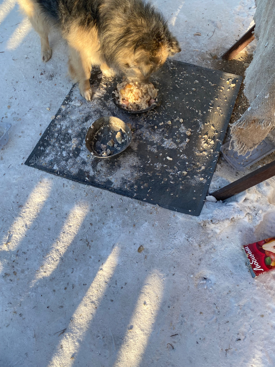 Я подрабатываю на пенсии тем, что кормлю хозяйского пса Бима. Сегодня как обычно пришла в 11 часов и принесла готовую еду, которую приготовили хозяева. Надо заметить , что он ее плохо ест и всегда замораживает. Я понюхала сама и не учуяла ничего вкусного. Разглядела из чего состоит обед , а это картошка, рожки и сверху порезана сарделька.Бим выбрал мясо , а остальное оставил. Каждый день я ему насыплю сухой магазинский корм и он его с удовольствием съедает. Бабушка сказала , что песик спит в сарае и надо туда вторую миску поставить на вечер. Вчера я так и сделала, но сегодня обнаружила , что корм цел, значит собака не заходила в сарай.Тогда я сделала вывод , что Бим ночует в другом месте, только где? Будка есть но она без подстилки. Боюсь представить себе то, что животное спит на снегу. Может мне принести сена из дома и положить в будку? Вдруг меня заругают , что намусорила в чужом доме. Говорить бесполезно, меня не слышат. Старшая дочь бабушки сказала, что нигде нету сена и взять