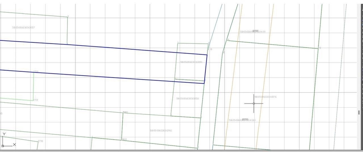 Вот и наши заказчики хотели продать излишки - уточнить границы и разделить участок. Но оказалось, вдоль дороги на учете уже стоит участок (на чертеже отображен красным цветом), который полностью перекрывает доступ к участку.