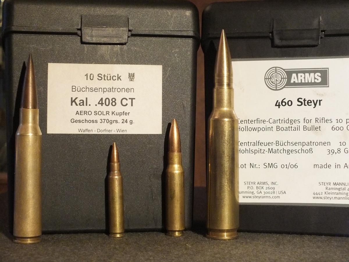 Но есть и совершенно противоположная точка зрения. В последнее время в оборот входит всё большее количество патронов для высокоточной стрельбы на большие дистанции. За счёт более мощных зарядов и значительно улучшенных внешнебаллистических характеристик пуль дальность их полёта довольно сильно возросла. И если для уже получившего распространение, более того, освоенного отечественной промышленностью патрона .338 Lapua Magnum расчётная дальность полёта пули составляет 5930 м, что с трудом, но укладывается в существующие требования, то для более нового патрона .408 Chey Tac эта дальность уже превышает 8000 м. Конечно, можно считать, что на такое расстояние прицельный выстрел невозможен и с оптимальным для этого углом возвышения траектории полёта никто не стреляет, однако всегда остаётся вероятность случайного выстрела, которую нельзя не учитывать. Патрон .408 Chey Tac далеко не единственный. На базе его гильзы уже серийно выпускается патрон .375 Chey Tac. К слову сказать, он продвигался на вышеупомянутой выставке в Манеже одной из отечественных оружейных компаний. На ещё большую дальность летят пули получившего распространение за океаном патрона .416 Barret и европейского .460 Stеyr. (Фото 2.)
