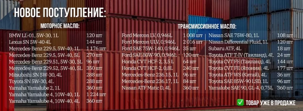 Компания «Рустранс-Логистик» предлагает полный ассортимент импортных смазок для высокотехнологичных моторов: мощных, экономичных, долговечных.Оригинальные смазочные материалы из Европы, ОАЭ, Сингапура, США и Японии. С нами вы можете быть уверены в том, что выбираете только самые лучшие продукты для вашего автомобиля. Доверяйте профессионалам и заботьтесь о своем транспорте, чтобы каждая поездка приносила лишь положительные эмоции!