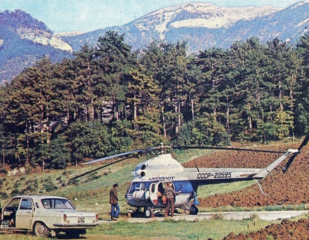 Полеты из Симферополя в Ялту открыли в 1958 году, а уже в 1959 году вертолетами были перевезено более 100 тысяч пассажиров. Полет на вертолете над Крымом по стоимости был соизмерим с 1 кг докторской колбасы. Билет в Ялту (до деноминации) стоил 50 рублей – то есть 5 рублей с 1961 года. Позднее цены упали до 3 рублей. На линии работали вертолеты Ми-2 (7-8 пассажиров) и Ми-4П (8-9 пассажиров). В 60-е годы на рекламных плакатах можно было найти цену за перелет всего в три рубля, а стоимость авиапрогулки на самолет АН-2 — всего один рубль. Добавлю, что вылеты вертолетов позднее совершались не только из аэропорта «Центральный», но и из аэропорта «Заводское» в Симферополе. Здесь базировался авиаотряд. Фото вертолета КА-15 на постаменте на аэродроме. После открытия и оборудования пещеры Мраморная на нижнем плато Чатыр-Дага в конце 80-х годов туда также из Симферополя летали вертолеты Ми-8, билет уже стоил 10 рублей. Сегодня час аренды вертолета Bell стоит порядка 130 тыс. руб. Перелет