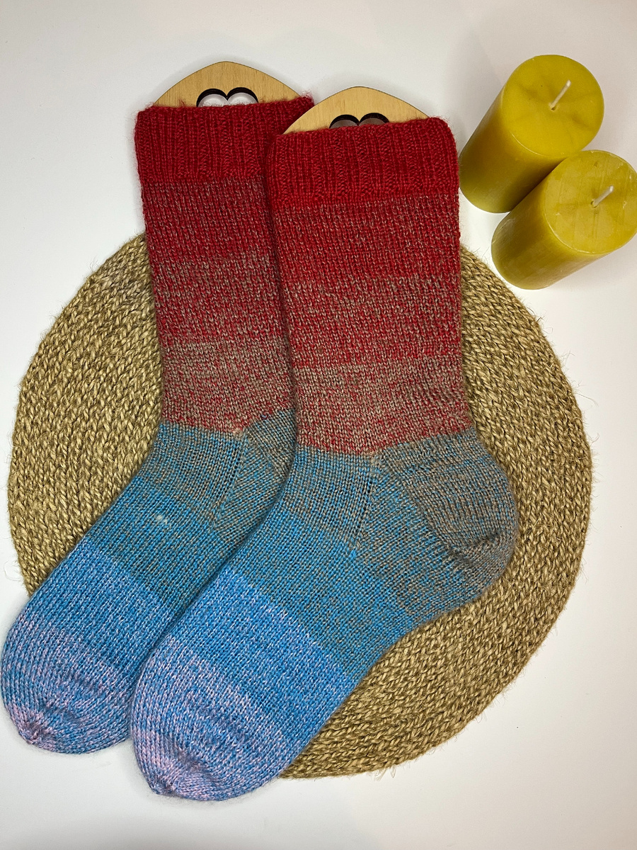 Так случилось и тут. Давно заприметила эту пряжу, очень уж красивые цвета были и сама пряжа очень мягкая и приятная. Изначально брала расцветку по выбору мужа, на трети носка поняла что количество петель на 43 размер потянет в лучшем случае на 39-40. Ок, вяжу маме в подарок к новому году. В конечном итоге передумала и оставила себе, потому что по объему размер тянул максимум на 36-37 и нога больше просто бы не вошла. Немного о минусах: В общем, пряжа сама по себе могла быть классной, если бы не эти НО, из-за чего изделие не годится ни в подарок, н