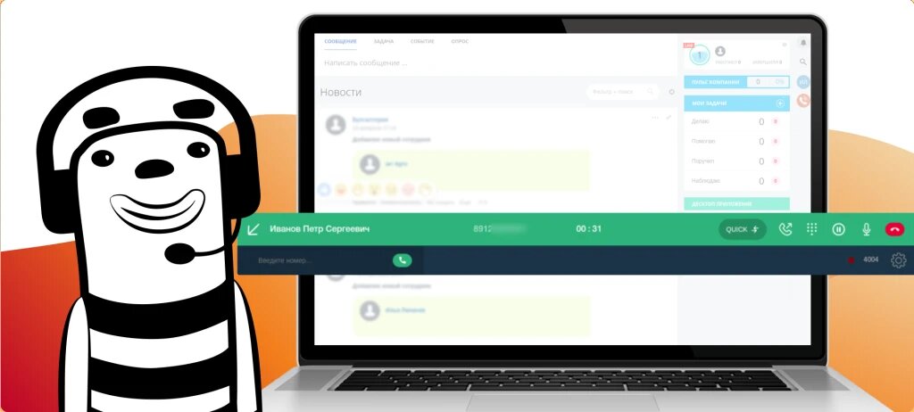 По нажатию одной кнопки всплывает меню переводов на внутренний номер сотрудника. Для быст