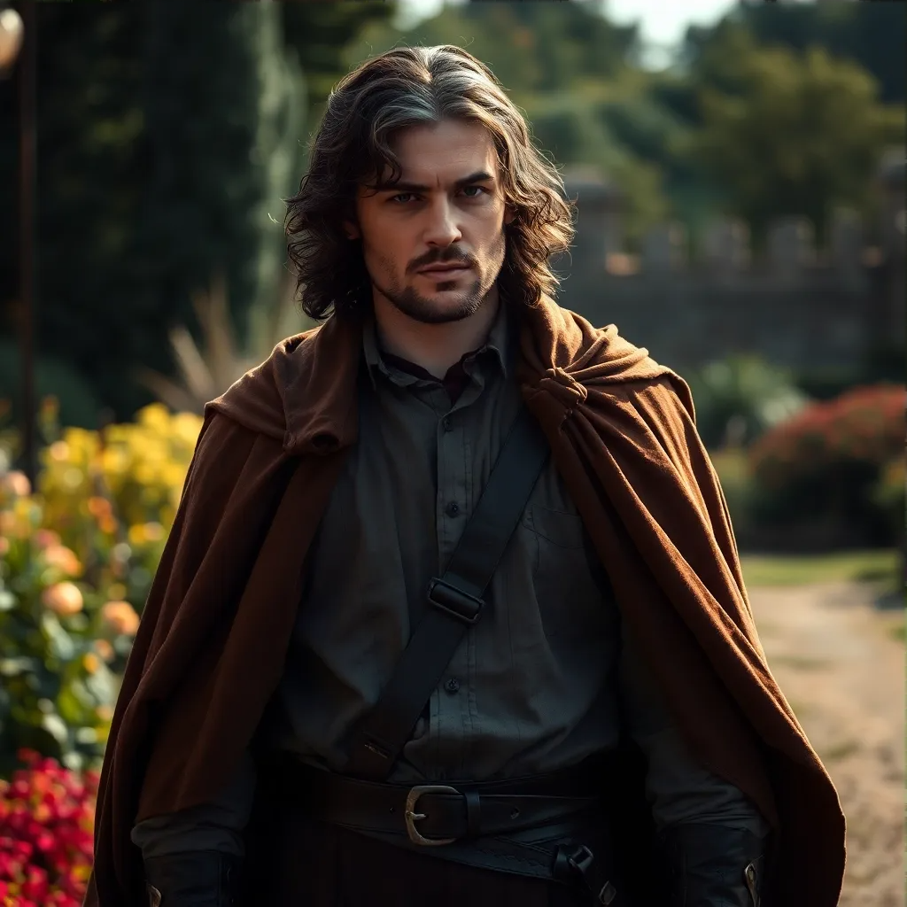 На фоне неба, раскрашенного мягким золотом и бархатистыми розовыми тонами, растения сияют, словно драгоценности, выставленные на свет. Вся композиция сада дышала жизнью — высокие статные деревья, они словно стражи, охраняющие это укромное место, их листья трепетали на легком ветерке, издавая едва слышный шёпот. Цветы всех оттенков — от яркой царственной пурпуры до нежного голубого — распускались среди зелени, их лепестки сверкали, как будто их окутала утренняя роса, которая еще не успела высохнуть. Запахи наполняли воздух, создавая гармонию ароматов. Свежесть роз и лилий сливался с пряным и сладковатым благоуханием жасмина и лаванды. Сквозь листву пробивались последние лучи заходящего солнца, заливая сад мягким золотистым светом.