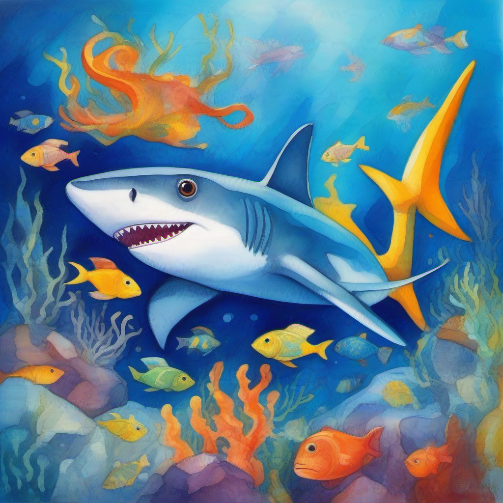 В глубинах синего океана жил маленький акуленок по имени Дин. Он был очень любопытным и всегда мечтал узнать, что находится за пределами его родного рифа. Родители часто предупреждали Дина об опасностях открытого моря, но он не слушал их. Однажды, когда вся семья отправилась на охоту, Дин увидел яркую стайку рыбок и не смог устоять. Он незаметно отплыл от родителей и последовал за красочными рыбками. Они плыли все дальше и дальше, а Дин был так увлечен, что не заметил, как оказался в незнакомых водах. Когда стайка рыбок исчезла в густых водорослях, Дин огляделся и понял, что заблудился. Вокруг не было ни одного знакомого ориентира, только бескрайняя синева океана. Страх охватил маленького акуленка, и он начал звать родителей, но никто не отзывался. Дин понял, что ему придется самому искать дорогу домой. Акуленок поплыл наугад, надеясь найти кого-нибудь, кто мог бы ему помочь. Вскоре он встретил старую черепаху, которая медленно плыла, неся на своем панцире целый мир из водорослей и мелких рыбешек. Дин рассказал ей о своей беде, и черепаха мудро посоветовала: "Малыш, иногда, чтобы найти путь домой, нужно сначала найти себя. Плыви за своим сердцем, оно приведет тебя туда, где ты должен быть". Акуленок поблагодарил черепаху и продолжил свой путь, размышляя над ее словами. Он плыл долго, пока не увидел яркий коралловый риф. Там он встретил веселую рыбку-клоуна по имени Пузырь. Пузырь был очень дружелюбным и предложил Дину остаться с ним и его семьей. Но акуленок, хоть и был благодарен за приглашение, знал, что должен продолжать поиски своего дома. Дин попрощался с Пузырем и поплыл дальше. Вскоре он оказался в темной пещере, где встретил светящегося угря. Угорь был мудрым и загадочным, он сказал Дину: "Маленький акуленок, твой дом не только там, где ты родился, но и там, где твое сердце. Найди свой внутренний свет, и он укажет тебе путь". Дин задумался над словами угря и понял, что его внутренний свет - это любовь к семье и дому. Он закрыл глаза и представил свой родной риф, своих родителей и друзей. Когда он открыл глаза, то увидел, что вокруг него собрались маленькие светящиеся рыбки. Они словно понимали его чувства и решили помочь. Рыбки выстроились в длинную цепочку, указывая Дину путь. Акуленок поблагодарил их и поплыл за ними, чувствуя, что теперь он на верном пути. По мере того как Дин следовал за светящимися рыбками, он встречал все больше и больше морских обитателей, которые хотели ему помочь. Осьминог по имени Чернильник предложил прокатить акуленка на своих щупальцах, чтобы тот мог отдохнуть. Стая дельфинов, услышав историю Дина, решила сопровождать его часть пути, развлекая веселыми прыжками и историями о своих приключениях. Даже грозный на вид меч-рыба по имени Острый проникся сочувствием к маленькому путешественнику и указал ему кратчайший путь через опасный участок океана. Дин был поражен добротой и отзывчивостью морских обитателей. Он понял, что океан - это не только огромное и пугающее пространство, но и дом для множества удивительных существ, готовых прийти на помощь друг другу. Путешествие Дина продолжалось несколько дней. Он научился находить пищу самостоятельно, стал сильнее и увереннее в себе. Акуленок понял, что его любопытство, которое привело к этому приключению, помогло ему открыть новый мир и обрести новых друзей. Однажды утром