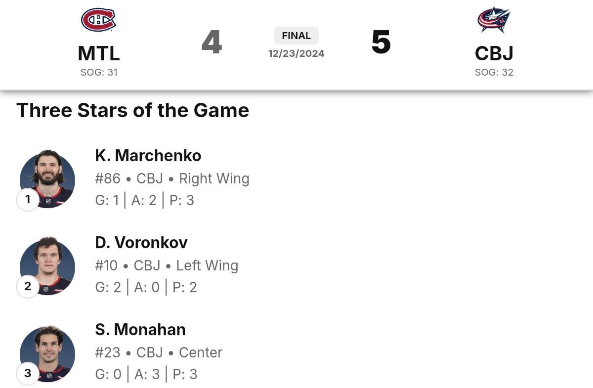 Фаны «Коламбуса» высказались о звездной игре Марченко и Воронкова против «Монреаля»