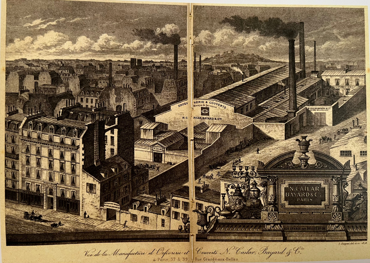 CAILAR, BAYARD & Cie Компания была основана в 1848 году Ноэлем Кайларом, торговцем металлом, и Пьером Байяром, мастером по серебру. Они участвовали и получали награды на выставках 1827, 1839, 1844 и 1849 годов, а к 1849 году уже специализировались на производстве столовых приборов и столового серебра. В 1889 году на фабрике работало двести рабочих - мужчин, женщин и детей. Воодушевленные успехом благодаря высокому качеству своей продукции, они продолжали расширять использование своих специальных технологий для всех видов изделий с серебряным покрытием, которые становились все более популярным и почти вытеснили изделия из чистого серебра. Компания пользовались большим успехом вплоть до 1920-х и 1930-х годов, а примерно в 1934 году компания была ликвидирована. Компания получили награды на Всемирных выставках 1855, 1867, 1878 и 1889 годов. В 1889 году они производили пятьдесят дюжин столовых вилок и ложек каждый день, что составляет 180 000 столовых вилок и ложек в год. Я искала и