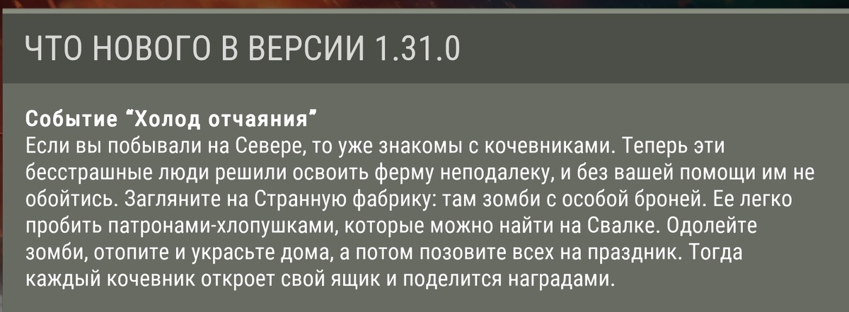 Начинается событие с разговора с кочевником на домашней локации и помощи в истреблении легчайших врагов-зомби на их заснеженной ферме.