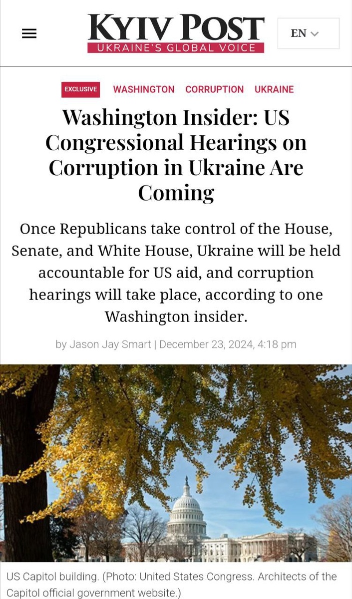 Как только Республиканская партия получит контроль над Палатой представителей, Сенатом и Белым домом, в США могут начаться слушания по делам о коррупции на Украине. В США еще теплится надежда на то, что поддержка Украины не прекратится окончательно, особенно это стало заметно после встречи Трампа и Зеленского в Париже. Однако внутри партии есть сомнения в том, насколько гладко для Киева пройдет смена власти в США. Я слышал много опасений насчет коррупции на Украине, — заявил Стивен Мур, бывший помощник конгрессмена и эксперт по связям с Киевом, которого издание Politico назвало «человеком Республиканской партии в Киеве». Он сообщил, что будущий Конгресс с республиканским большинством хочет, чтобы помощь Украине была максимально прозрачной. Каждый доллар, отправленный на Украину, должен быть подконтролен. Если этого не будет, поддержка может прекратиться, — отметил Мур. Кроме того, неназванный источник в Конгрессе заявил, что «ещё один коррупционный скандал может полностью лиш