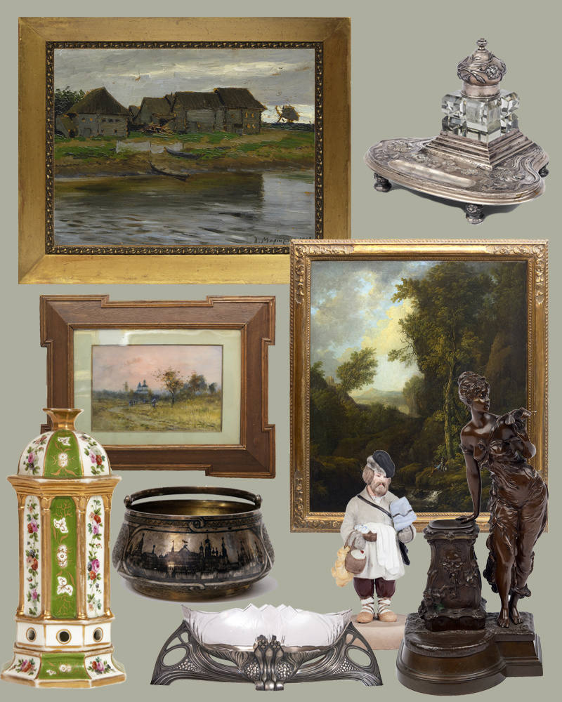 Составили подборку предметов, которые, на наш взгляд, могут стать приятным подарком статусному партнеру, душевному другу или любимой женщине. Здесь ценные вещицы, которые расскажут о Вашем бережном отношении к человеку: серебро и фарфоровая пластика, приятная живопись и благородная бронза. 1. Ваза-фруктовница в стиле модерн для ценителей утонченной эстетики эклектичного искусства начала ХХ века. Вещь, которая найдет свое место в быту и украсит его. 2. Ароматница с цветочным орнаментом - фарфоровая безделушка, наполненная смыслом, коллекционным и бытовым значением, сделает помещение уютным и ароматным. 3. Чернильный прибор в стиле модерн - подарок для делового партнёра, займет свое законное место на рабочем столе. 4. Скульптура "Девушка у источника", Западная Европа, 1898 год. Утончённый образец бронзовой пластики. Источник - символ плодородия и процветания. 5. Фарфоровая скульптура "Продавец сбитня". Коллекционные фигурки частного завода Гарднера (1880-1890-е) – предмет охоты для мног