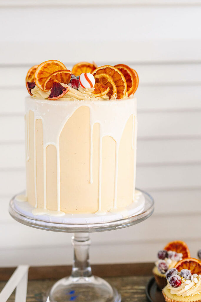 Главным украшением этого праздника стала еда! Множество прекрасных блюд, которые создавали торжественную обстановку и прямо-таки призывали их попробовать! Простые, но красочные блюда блюда преобразят ваш новогодний стол или зимний день рождения. А если самим готовить не хочется, то можно поручить нам праздник под ключ — и украсим, и накормим! Пока другие изобретают сложные способы сделать венок из еды, мы за самые простые лайфхаки! Например, как этот венок из шпажек. Если хотите придать ему классический вид, то используйте зелень, огурцы и помидоры. У сухих апельсинов и заснеженных ягод определённо новогодние вайбы! Поэтому они стали прекрасным дополнением самых простых капкейков. Но какой бы красивой ни была еда, зону с закусками тоже нужно украсить! Здесь использовали бумажные звёзды и венки. В каждой детали оформления ощущается новогодний, зимний уют! Благородную изумрудную зелень оттеняли беж и тёплые оранжевые акценты! На столе было много непривычной для зимы зелени, которая, тем