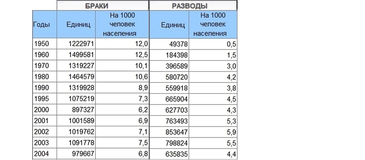 К 1980 году в СССР бракоразводный конвейер заработал на полную мощь: Согласно Федеральной службе государственной статистики с 1960 по 1980 год количество разводов в СССР увеличилось c 4% до 40% (в 10 раз!). Не нужно думать, что в Советском Союзе жили одни идиоты, и никто не замечал этих опасных тенденций. Не нужно думать, что никто не изучал причины возникновения этих явлений. Видели, изучали, понимали и пытались доносить до общества через культуру.