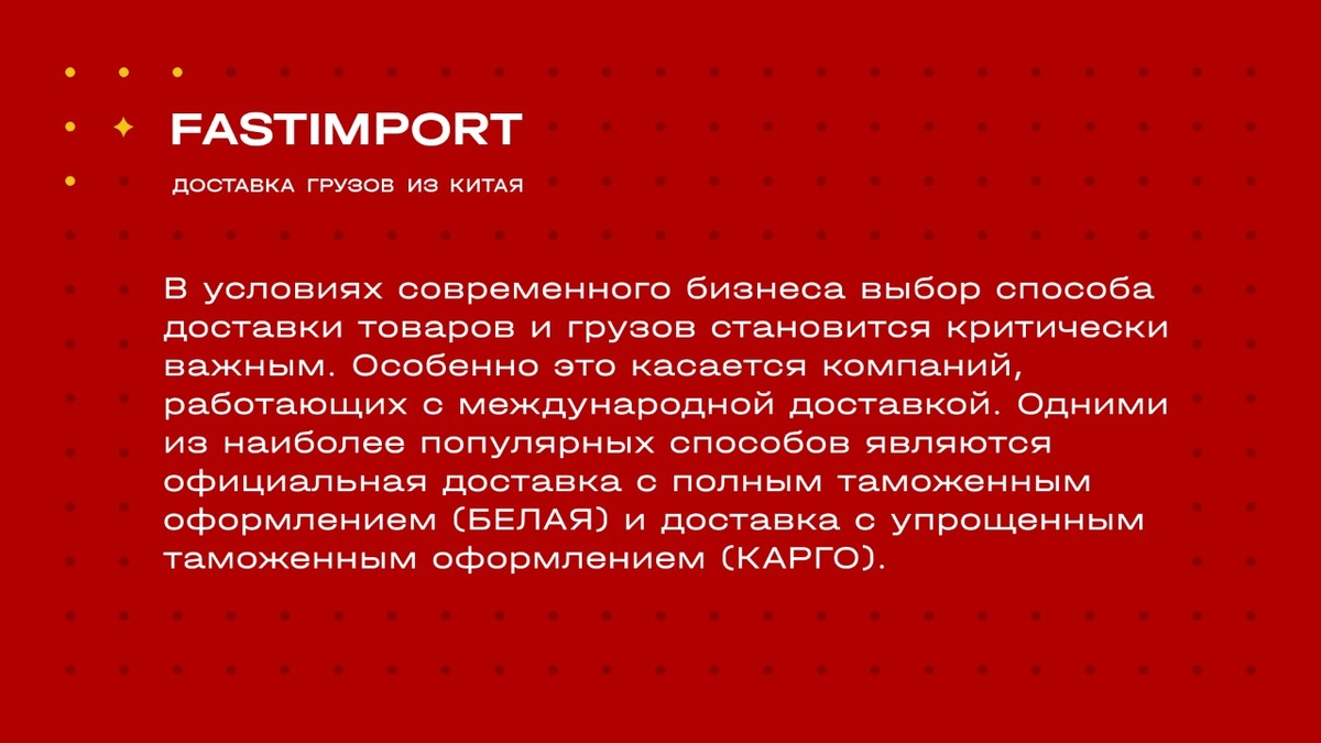 Основные отличия доставки с полным таможенным оформлением(БЕЛАЯ) от упрощённой доставки (КАРГО)