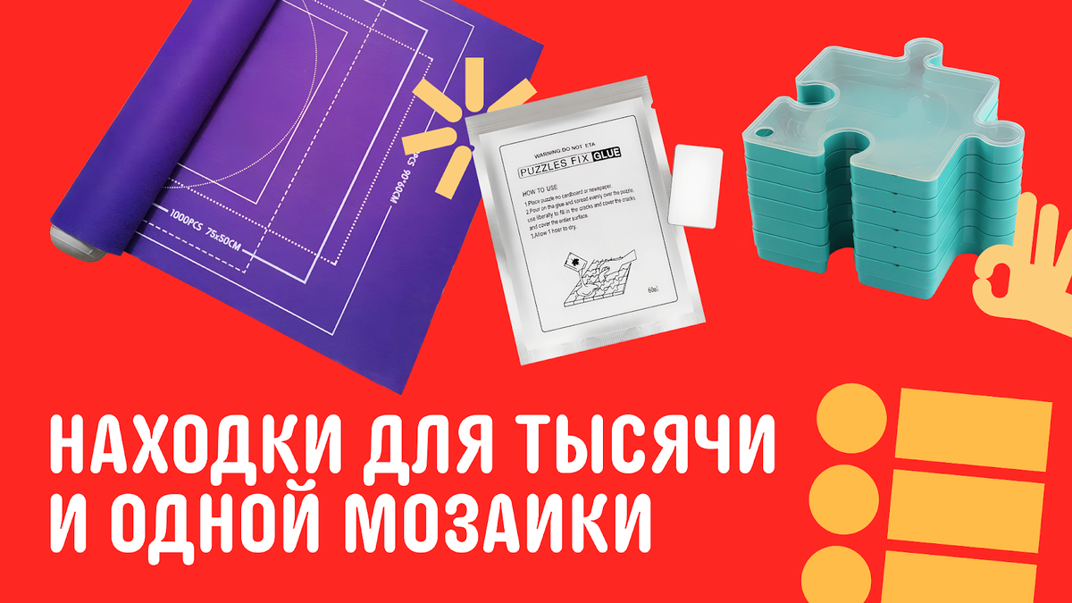Если процесс сборки растягивается надолго, нужно куда-то откладывать сотни мелких кусочков и ни один не потерять. Да и готовые шедевры должны найти своё почётное место, а не занимать половину стола или шкафа. Мы нашли неочевидные, но полезные товары с AliExpress, которые решают эти проблемы. Можно разложить все фрагменты по цветовой гамме или узорам — так будет проще искать нужные части для каждого участка изображения. Или разделить их по форме: угловые, боковые и центральные. Если пазл собирается на ограниченной площади, то благодаря контейнерам не будет хаоса на столе. К тому же можно будет прерваться в любой момент и спрятать все детали. Коврик с разметкой позволяет без проблем сохранить результат на будущее и перенести работу в любое место — например, на подоконник. Его можно свернуть в рулон с помощью надувного ролла, картина при этом не пострадает и не развалится. А если размеры помещения позволяют, можно использовать переносной складной стол с выдвижными ящиками для хранения паз