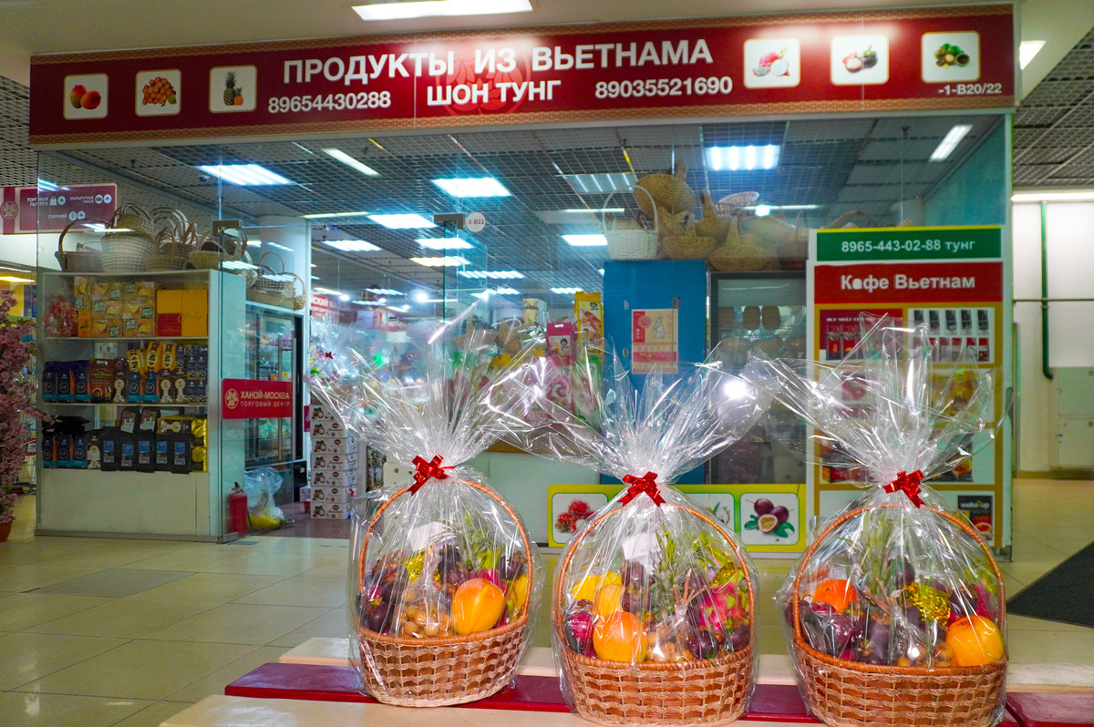 Колоритные подарочные корзины с экзотическими фруктами, премиальным вьетнамским кофе и чаем всегда можно собрать в «Ханой-Москва» на -1 этаже. Продавцы эстетично упакуют аутентичный презент с любым товаром и на любую сумму. Но конечно же эффектнее всего в качестве подарка преподнести тропические фрукты, которые выглядят очень экзотично на фоне зимних сугробов. Где: ТЦ «Ханой-Москва», – 1 этаж