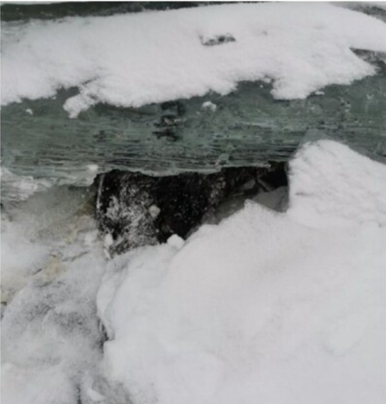 Возможно, вышло на берег в поисках пищи, а обратный путь оказался отрезан образовавшимся льдом.