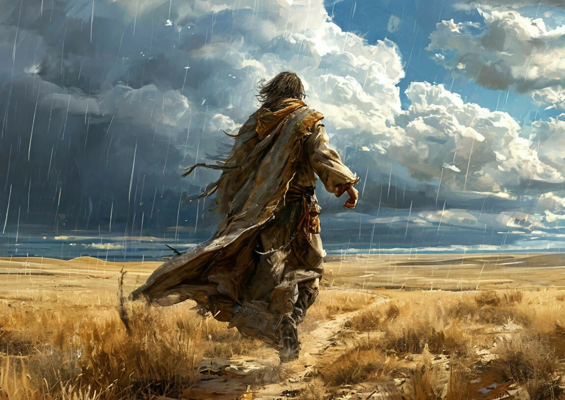 В надежде достичь своей цели запыхавшийся и изрядно утомившийся мужчина только сейчас понял, что дождь льёт только над ним. Уже в сотне шагов всё также светило солнце, а в раскалённом воздухе летали жуки и частички пыли.