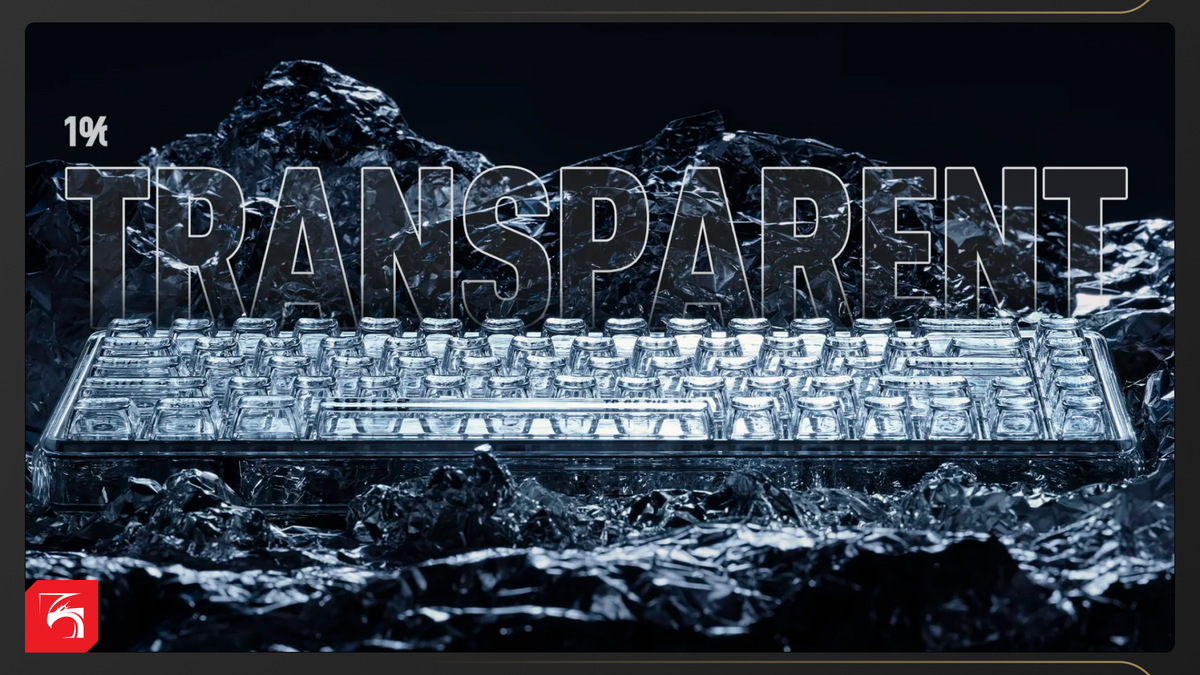 Корпус и клавиши выполнены из очень необычного для клавиатур материала — поликарбоната — одного из самых прочных и твёрдых пластиков. Это означает две вещи. Во-первых, поликарбонат чрезвычайно устойчив к УФ-изучению, то есть не пожелтеет, а останется абсолютно прозрачным. Во-вторых, высокая твёрдость почти исключает появление потёртостей и царапин. Через много лет 1% Transparent будет выглядеть ровно так же, как в момент покупки.