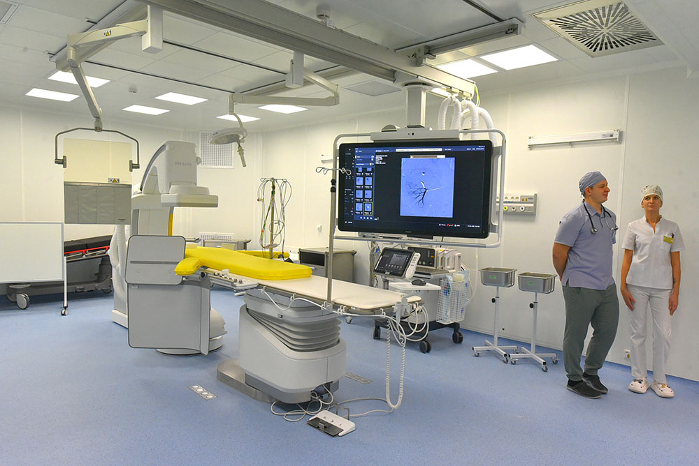 Этого события ждали жители Гомеля и всего региона. Накануне Нового года в областной больнице ввели в строй новый корпус с МРТ и ангиографом. Бонусом учреждения Гомельщины получили 11 реанимобилей, вручить ключи от которых в областной центр приехал министр здравоохранения Александр Ходжаев. Гомельская областная клиническая больница остро нуждалась в МРТ, старый аппарат вышел из строя два года назад. Пациентов перенаправляли в другие больницы города. До поломки на аппарате проводилось 13 тысяч исследований в год. Новый корпус оснащён современным МРТ с напряжённостью магнитного поля 1,5 Тесла. А это значит, что диагностика на таком аппарате – высокоинформативная, есть возможность использовать контрастные вещества, доступны современные методики сканирования и программы обработки изображений. Ангиограф будет использоваться не только для диагностики, но и для малоинвазивных вмешательств. Врачи областной больницы уже проводят эмболизацию питающих миому сосудов на имеющемся ангиогра