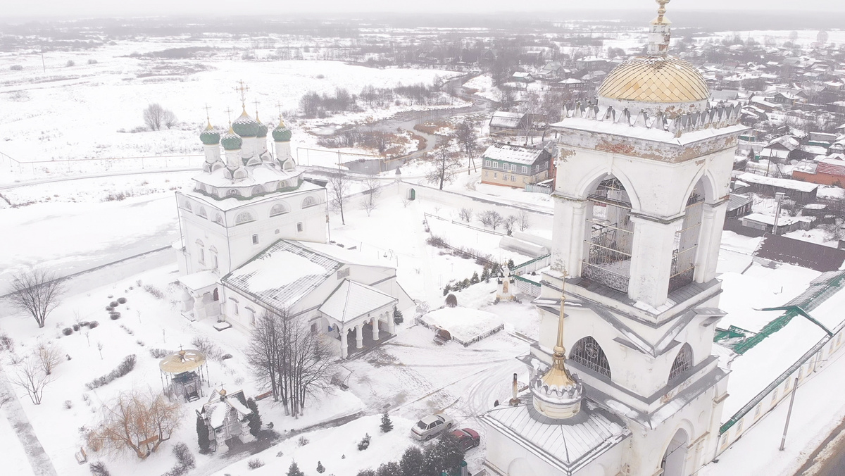 Белоснежный храм на высоком берегу Мстёрки. Вид на Богоявленский мужской монастырь с противоположного берега реки открывается впечатляющий. Недаром эту точку облюбовали художники, которые едут в Мстёру за чудесной натурой и по сей день.