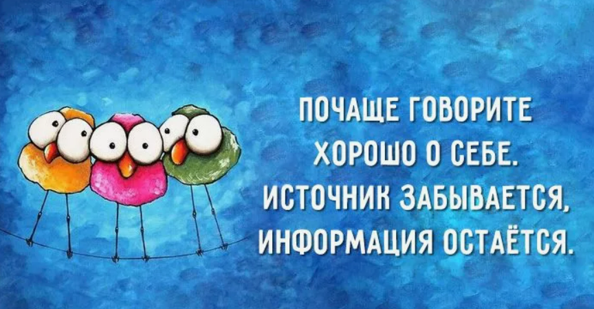 Почаще говорите хорошо о себе. Источник забывается, информация остается.
