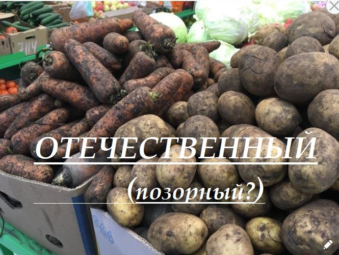Ну а раз написано «Отечественная картошка» — значит надо брать только такую. И думать нечего. Кто любит Родину — тот обязан любить чумазую картошку!