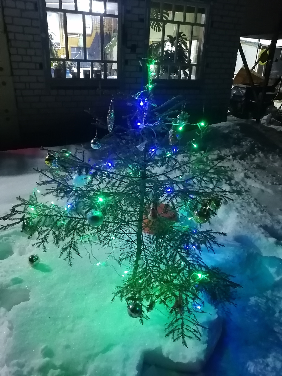 Ну и так как мы теперь ночные жители, то, пока варится каша для собак и стиралка работает (ночью стирала тюли с окон), мы ушли наряжать ёлочку нашу.